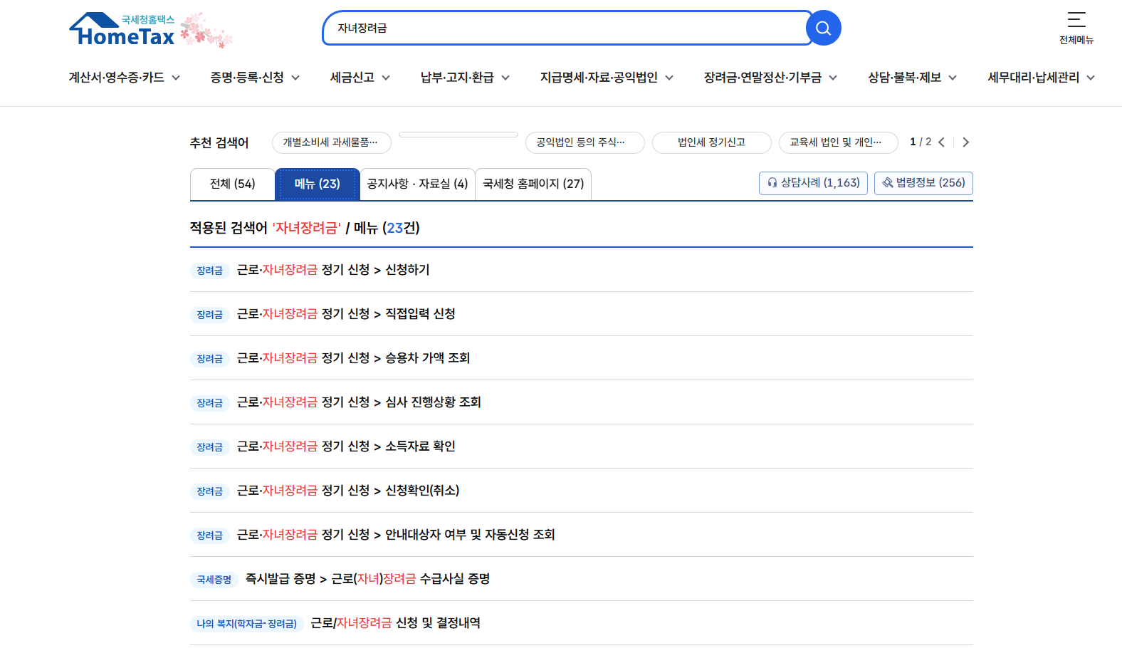 로그인 후 ‘자녀장려금 자격 조회’ 메뉴 클릭