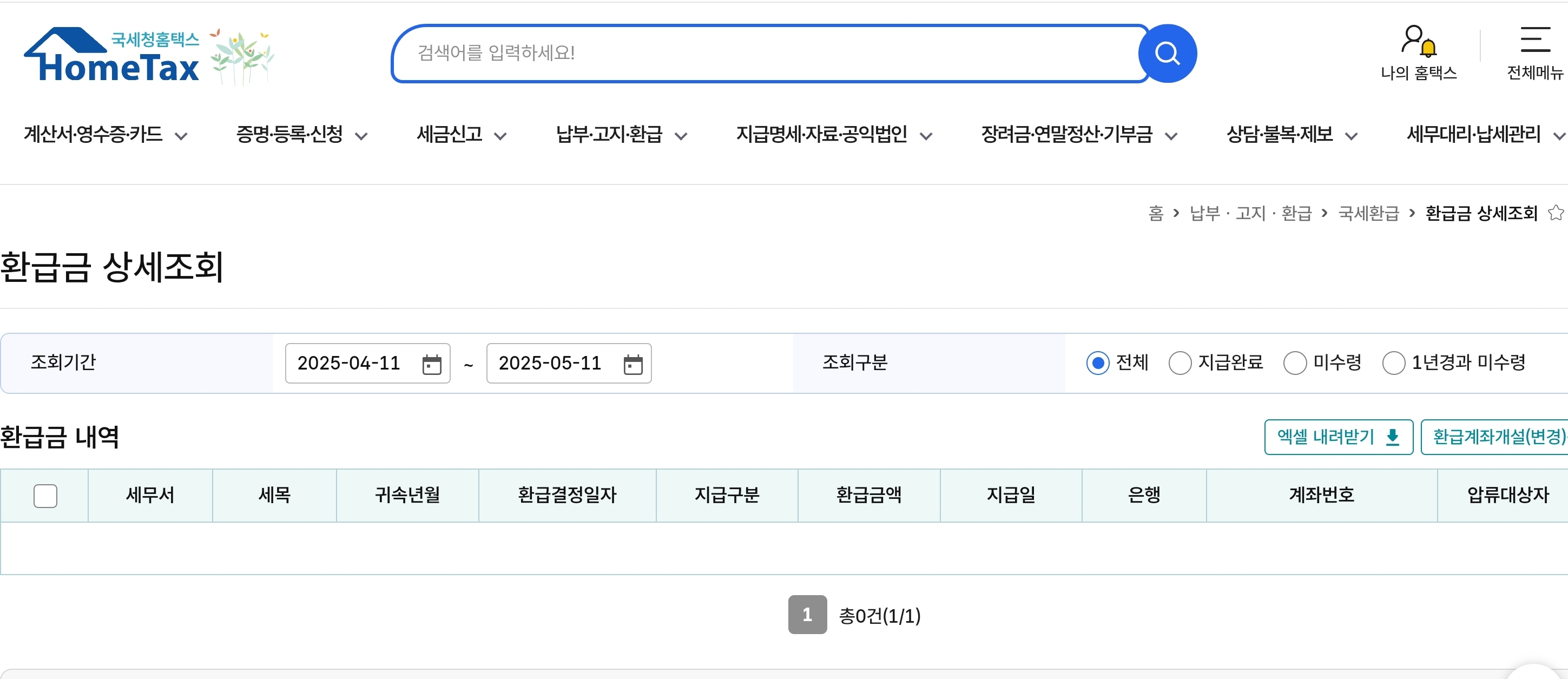 좌측 또는 하단의 ‘기타 조회’ 항목에서 ‘환급금 조회’를 클릭하면 나의 환급 내역을 확인할 수 있습니다.