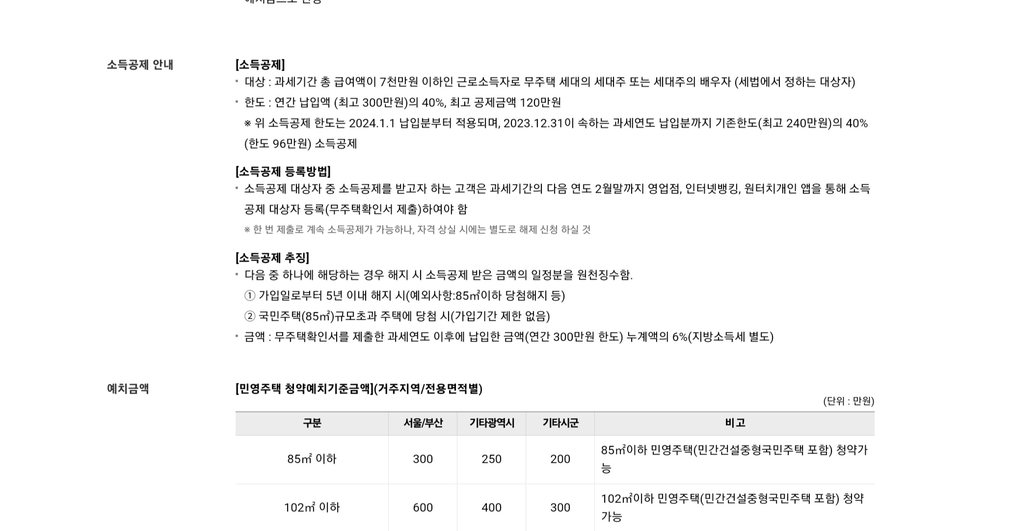 (1)주택청약 종합저축 소득공제 조건