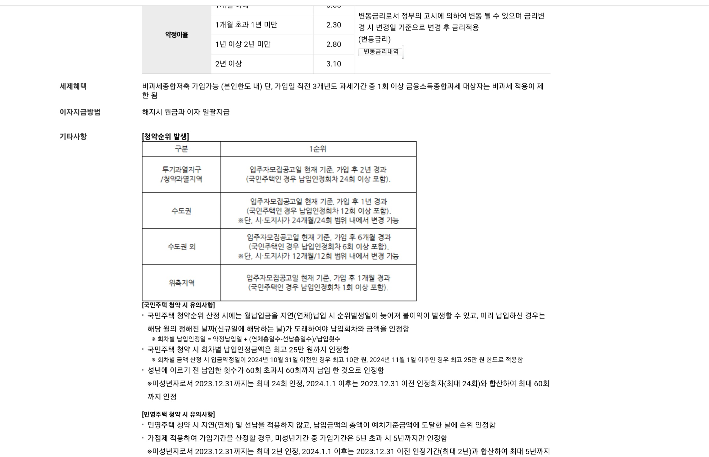 주택청약 종합저축 유의사항