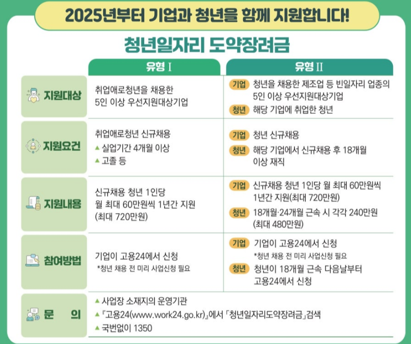 청년 일자리 도약 장려금 지원내용