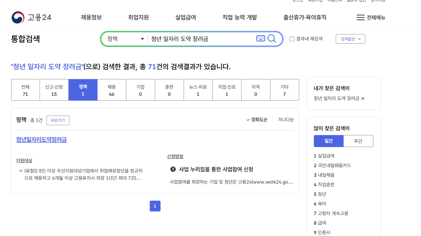온라인 신청 사이트 예시: 고용노동부 청년고용지원 홈페이지
