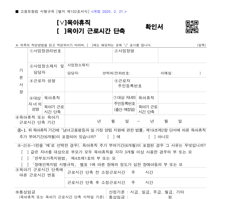 육아휴직 확인서 회사 인사팀 또는 담당자 발급 필요